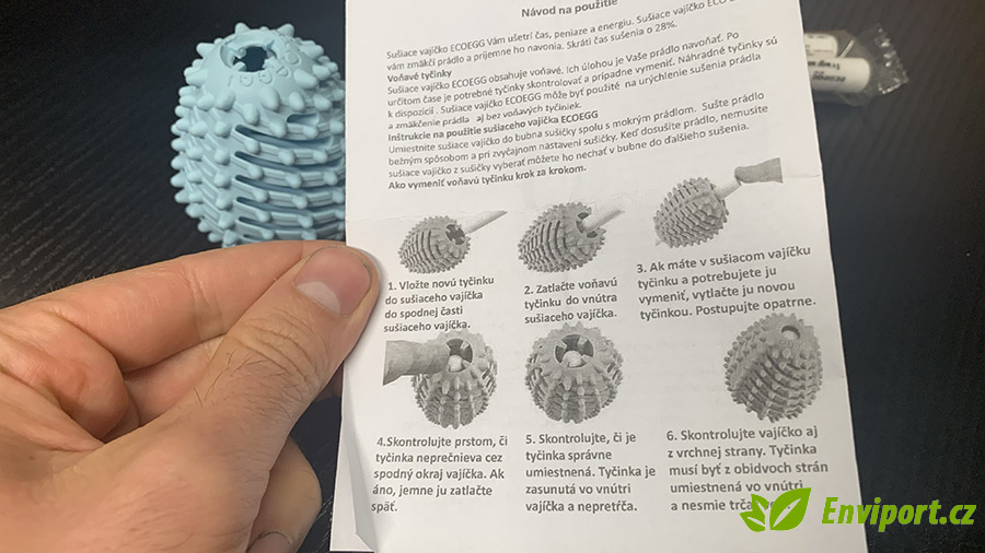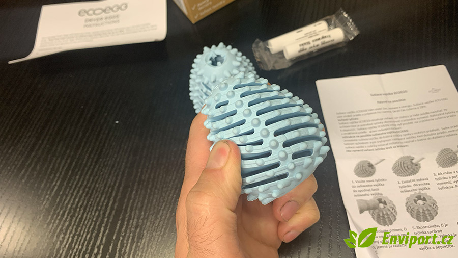 Vajíčka společnými silami nadzvedávají jednotlivé kousky textilu a dosahují rychlejšího a efektivnějšího sušení. Ecoegg dle výrobce i našeho průběžného pozorování zkracují dobu sušicího cyklu až o 28 % a díky tomu spolehlivě snižují spotřebu elektrické energie.
