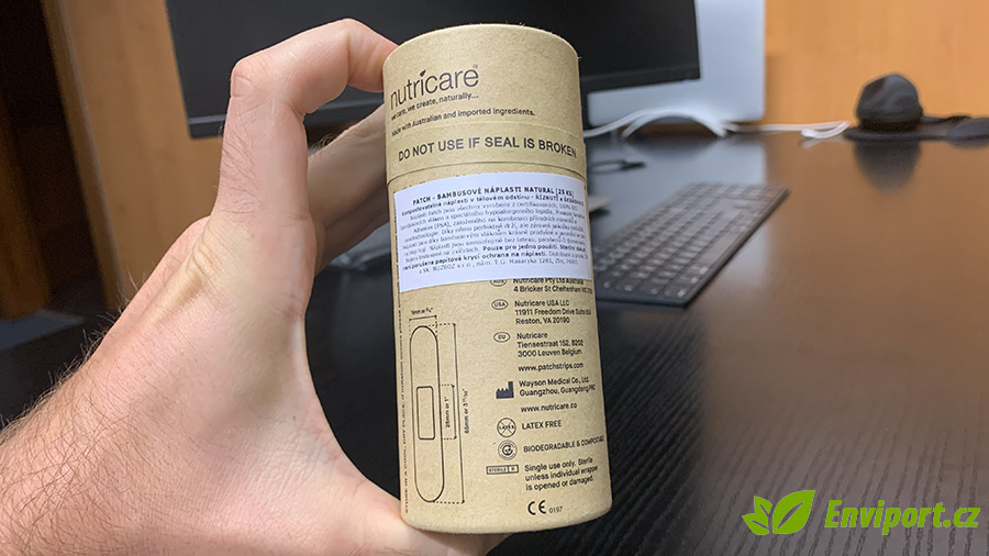 - náplast (tedy tělo produktu nesoucí polštářek) je rovněž vyrobena z bambusových vláken bez přídavku dalších příměsí a přísad