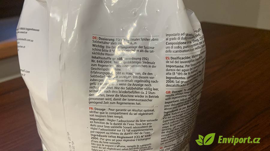 Funkcí soli v myčce je předcházet vodnímu kameni a také usazeninám na nádobí. Regenerační sůl do myčky značky Sonett je čistá, krystalická a bez přídavku protispékavých látek, syntetických barviv či jiných nežádoucích komponentů.