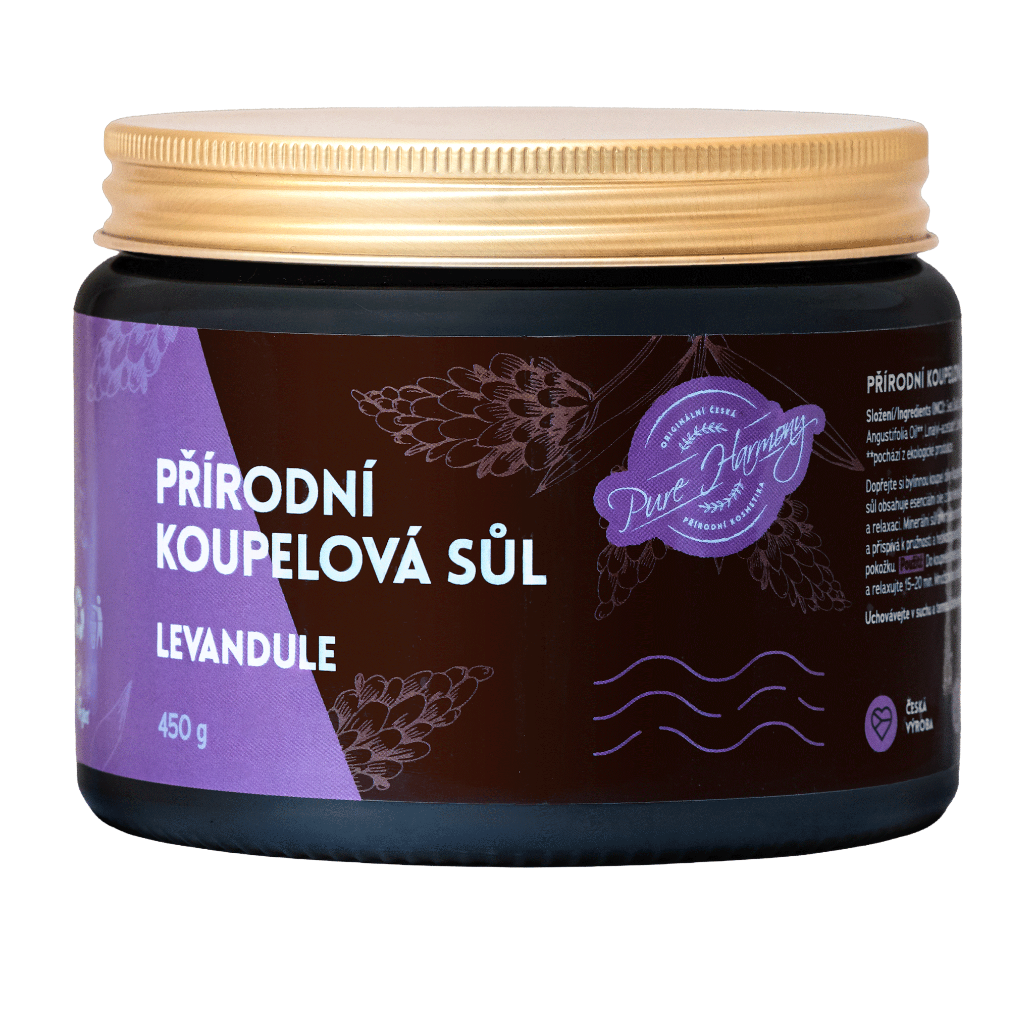 Užijte si hluboký relax s přírodní solí do koupele Levandule od Pure Harmony. Spojuje minerály z Mrtvého moře, bio esenciální olej z levandule lékařské a sušené květy pěstované na jižní Moravě.