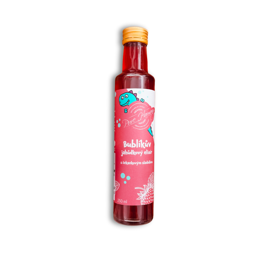 Bublíkův jahůdkový elixír s čekankovým sladidlem je vyrobený ze šťávy z vylisovaných zahradních jahod a extraktu z čekanky. Vychutnejte si osvěžující doušek této lahodné šťávy a připravte si třeba osvěžující jahůdkovou limonádu anebo čaj ochucený jahůdkovou šťávou.