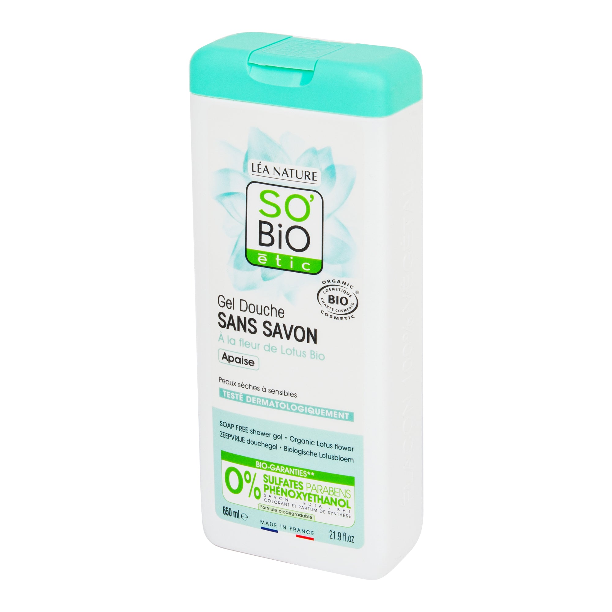 Sprchový gel BEZ MÝDLA určený pro potřeby suché a citlivé pokožky. Díky složení bez sulfátů citlivě čistí a chrání pokožku před vysoušením během mytí. Obsahuje organický lotosový květ uznávaný pro své změkčující a zklidňující vlastnosti. Použita jsou pouze jemná pěnivá činidla, která pokožku myjí delikátně. Sprchové gely SO’BiO étic zaručují ochranu hydrolipidního filmu a tím pokožku chrání před vnějším podrážděním. Etický přístup má francouzská značka SO’BiO étic nejen v názvu. Do puntíku se jím řídí už od roku 2007 při výběru dodavatelů surovin, materiálu obalů i samotné výrobě. Záleží jí na tom, aby si vysoce kvalitní přírodní kosmetiku mohl dovolit opravdu každý, a tak ji nabízí za férovou cenu. Svou širokou nabídkou opečuje ženy, muže i děti od hlavy až po paty. Portfolio neustále rozšiřuje a stíhá při tom finančně podporovat environmentální projekty. Její produkty nesou přísnou certifikaci Ecocert a ochrannou známku Cosmébio.