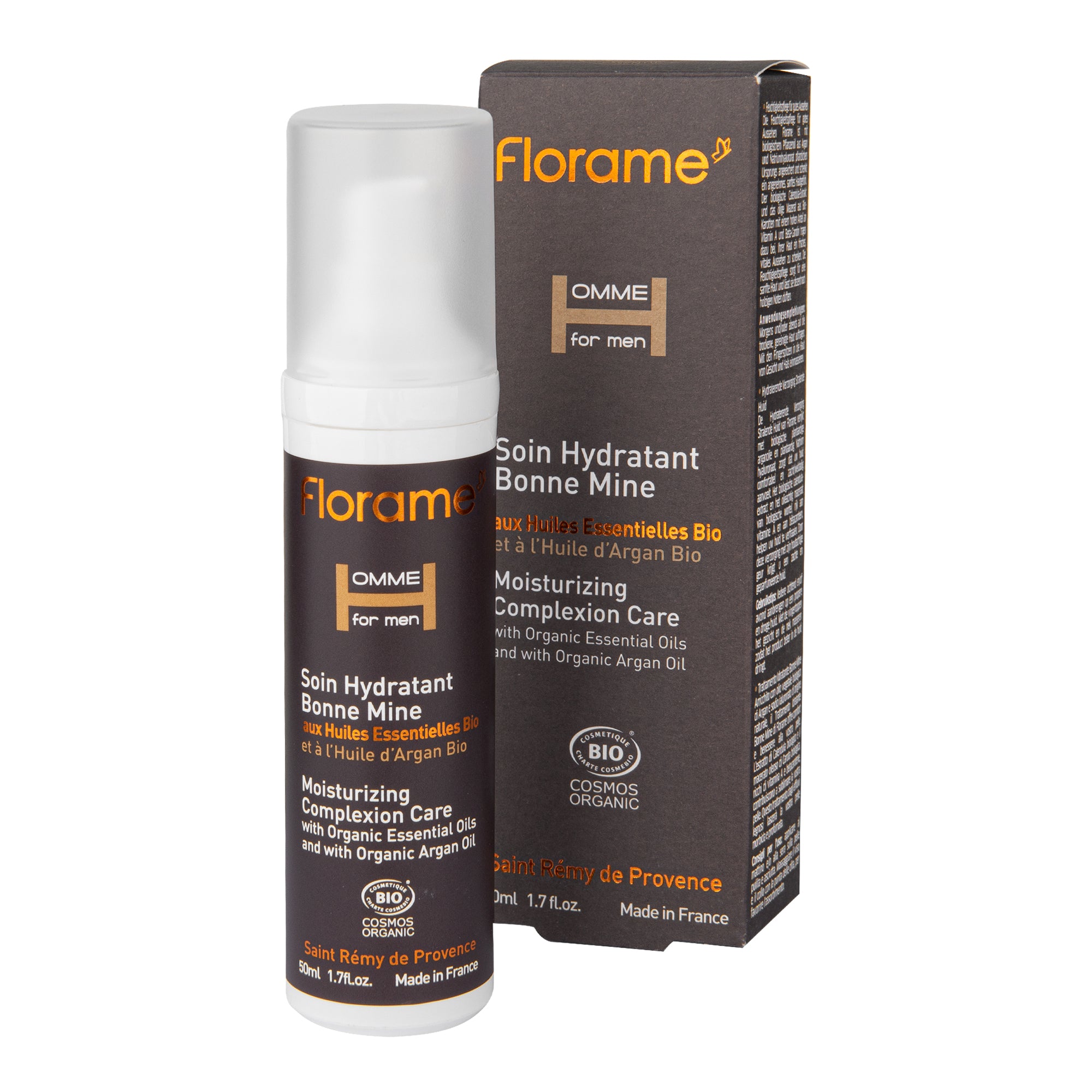 Hydratační péče pro mužskou pleť. Ani krém, ani fluid ani mléko. Ideální konzistence pro okamžité vstřebání a zvláčnění pokožky. Certifikáty ECOCERT a COSMEBIO. S obsahem arganového oleje, cedru, aloe vera, měsíčku lékařského a kyseliny hyaluronové. Lehký, zvláčňující, zklidňující. Vůni přímo z francouzské Provence ukrývá značka Florame do své organické kosmetiky už od roku 1990. Její základ tvoří kvalitní esenciální oleje z ekologických zemědělství. Čistotu složení kosmetiky bez parabenů, silikonů, GMO a syntetických přísad má Florame posvěcenou certifikací Ecocert – Cosmos Organic.