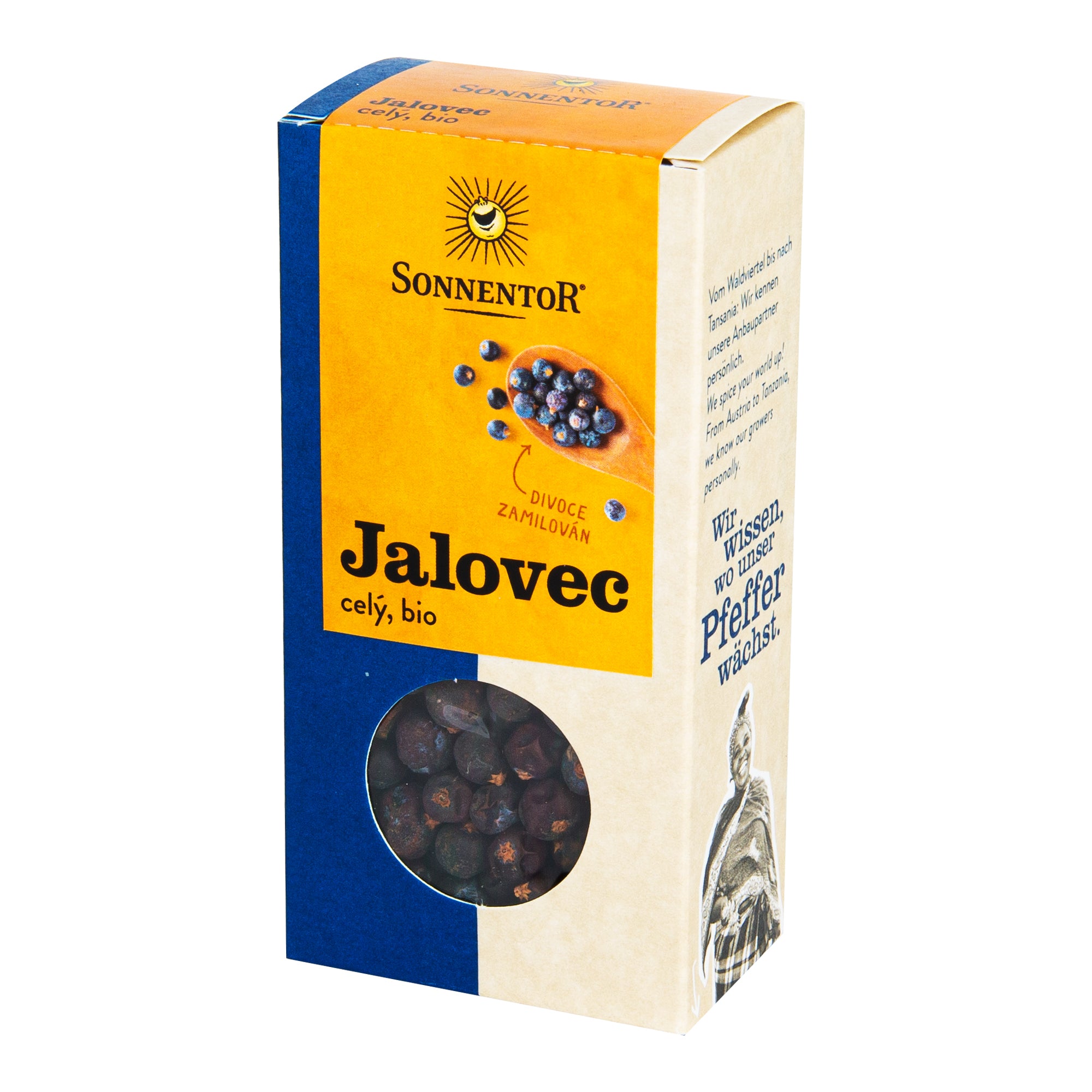 Unikátní chuť pro sladké i slané pokrmy. Temně fialové bobule jalovce vypadají také velmi dekorativně. Česko-rakouská značka Sonnentor nás svým přístupem uvádí v obdivný úžas. Průkopník ve výrobě bioproduktů svými lahodnými čaji i voňavým kořením rozdává radost už přes čtvrt století. Es má přitom tahle srdcová značka plný rukáv. 100% BIO kvalita každé ingredience. Šetrné zpracování a velký díl ruční práce. Kompostovatelné materiály, minimalizace odpadů a uhlíkové stopy. Obdivuhodně transparentní a férová spolupráce s farmáři. To jsou jen střípky inspirativní práce, kterou tým Sonnentoru dělá svět lepším místem. Nezaměnitelná značka přeměňuje obyčejný hrneček s čajem v symbol naděje, že poctivou prací v souladu se Zemí skutečně můžeme pomoci následujícím generacím k lepší budoucnosti.