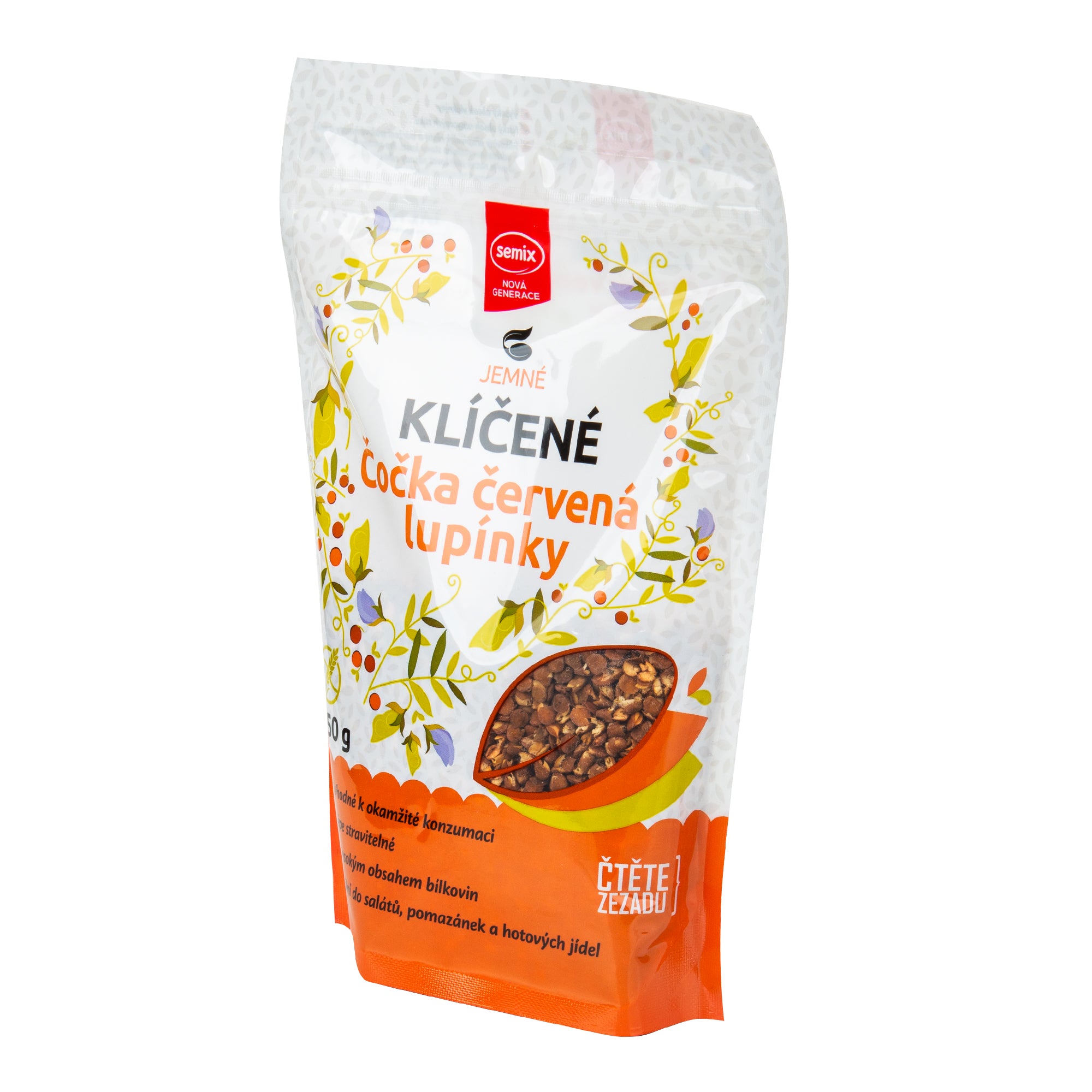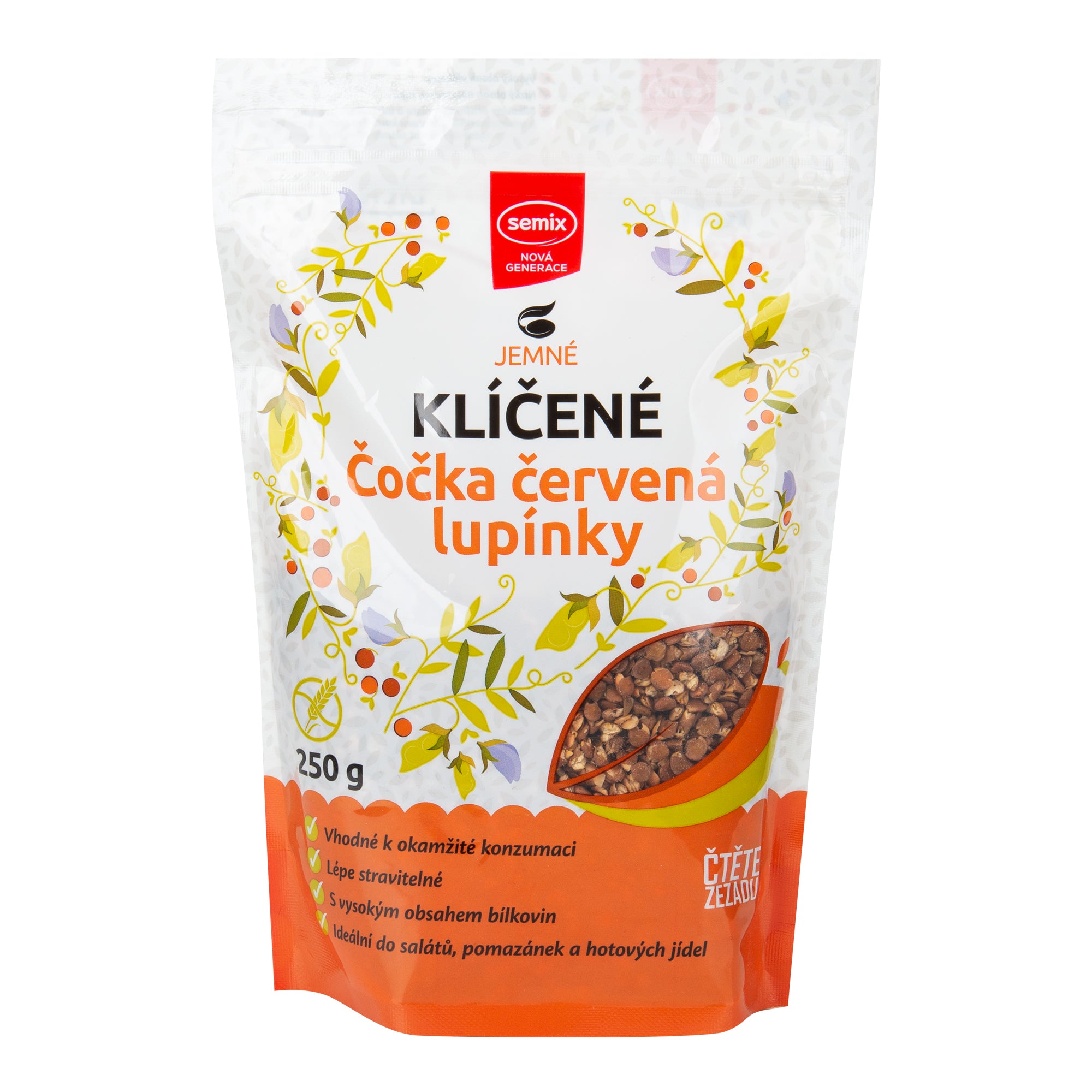 Lupínky z klíčené červené čočky jsou netradičním celozrnným výrobkem, který již nevyžaduje žádnou další kuchyňskou úpravu. Jsou přirozeně bezlepkové. Lupínky jsou křupavé a bez přídavku tuku. Ideální do pomazánek, salátů nebo hotových jídel. Vhodné jsou i k okamžité konzumaci. Od českého výrobce. Mixovat semínka – to české značce Semix Pluso vskutku jde. Už roku 1995 zásobuje trh celozrnnými cereáliemi, pekařskými směsi na výrobu špičkového pečiva a celou řadou dalších zdravých potravin. Klade při tom důraz na zpracovávání zrnin tak, aby v nich byly v maximální míře zachovány všechny živiny a minerální látky.