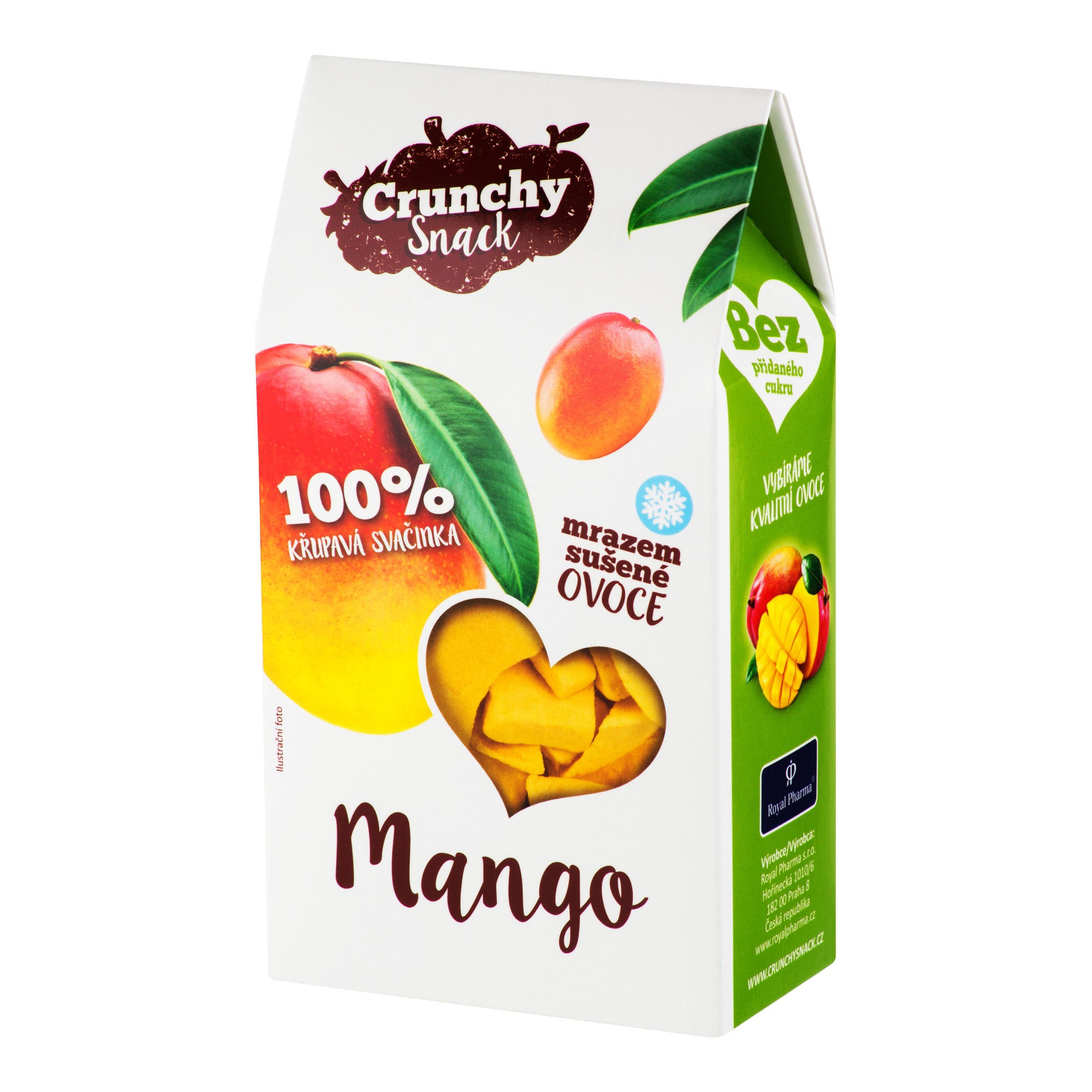 Mango je sušené mrazem, jelikož si tak lépe zachová svou původní barvu, aroma i chuť. Vhodné jako pamlsek i jako náhrada čerstvého ovoce. Připravíte z něj sladké cukroví nebo výbornou snídani. Royal Pharma® je jedním z největších českých dovozců zelených potravin. Kromě chlorelly nebo třeba mladého ječmene má v portfoliu také řadu přírodních doplňků stravy, pod značkou Crunchy Snack pak nabízí mrazem sušené ovoce. Vybírá si při tom jen ty nejlepší pěstitele a suroviny podrobuje přísným testům v laboratoři.