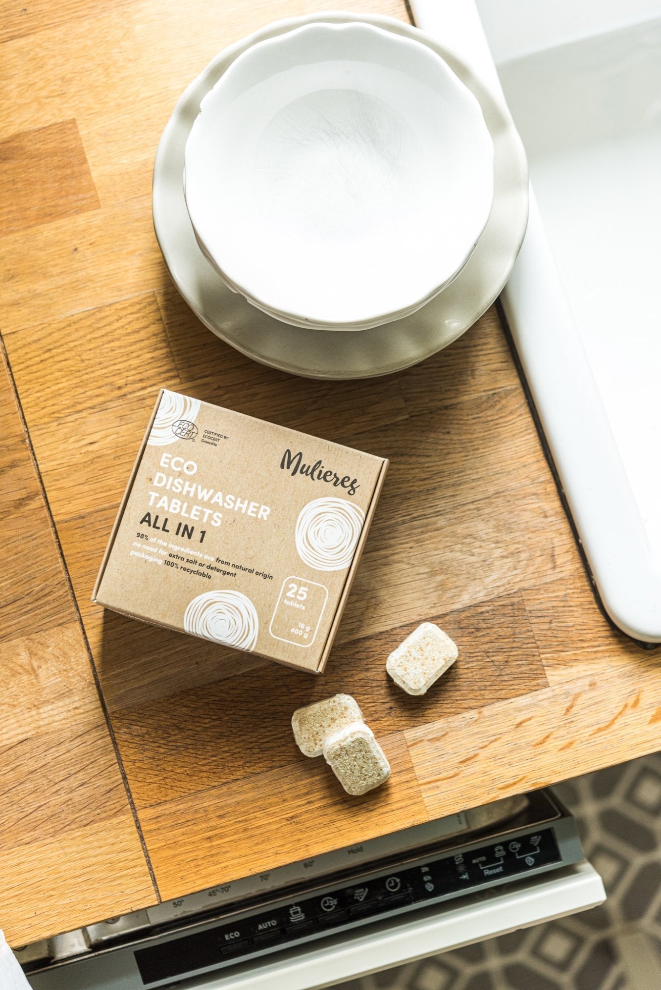 ❗️ Sleva za produkt bez původního obalu. V Mulieres vyslyšeli úpění všech myček, které se také chtějí stravovat zdravě a ekologicky. Z šetrně získaných rostlinných a minerálních látek proto vytvořili tyto tablety s certifikací EcoCert. Skvěle si poradí i s tvrdohlavými a zaschlými nečistotami a skleněné i nerezové nádobí z myčky vyplivnou nablýskané jako nikdy. Při jejich výrobě nebyla použita ani kapka vody, chráněné jsou obalem, který se ve vodě zcela rozpustí a svými skvělými mycími schopnostmi rády oblažují i veganské domácnosti. Estonská značka ekodrogerie Mulieres se zrodila z touhy po zdravém domově, ve kterém děti vyrůstají v bezpečí, obklopeny přírodními látkami namísto škodlivé chemie. Všechny přípravky k úklidu a praní jsou vysoce účinné, hypoalergenní, bez dráždivých látek a jen z těch nejkvalitnějších přírodních surovin. Olivové mýdlo a kvalitní éterické oleje v kombinaci se zeleným srdcem a chytrou hlavou výrobců, tvoří geniální recept, který jsme si zkrátka zamilovali.