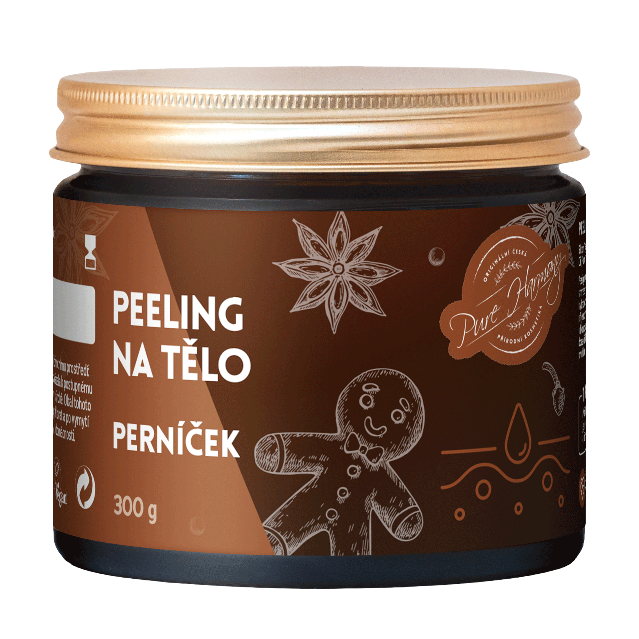 Dopřejte své pokožce voňavý rituál s tělovým peelingem Perníček. Jemná mořská sůl odstraní odumřelé buňky a bambucké máslo pokožku zvláční. Peeling obsahuje velké množství rostlinných olejů, které tělu dopřejí vysoce hydratační efekt.