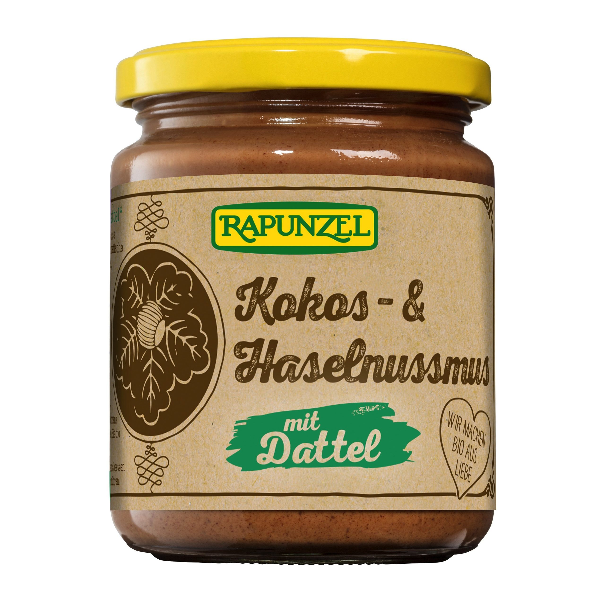 Jemná pomazánka z kokosu a lískových oříšků slazená datlemi, bez přidaného cukru. Má oříškovou chuť a přirozenou sladkost. Hodí se na pečivo, do kaší, dezertů nebo jen tak. Jeden z předních výrobců biopotravin v Evropě Rapunzel přišel na trh v roce 1974. Od počátku dbá na to, aby suroviny pocházely z ekologických zemědělství, která o půdu pečují tak, aby dávala plodiny i budoucím generacím. Dnes má v portfoliu téměř 600 vegetariánských produktů – od oříškových másel a müsli až po oleje či luštěniny.