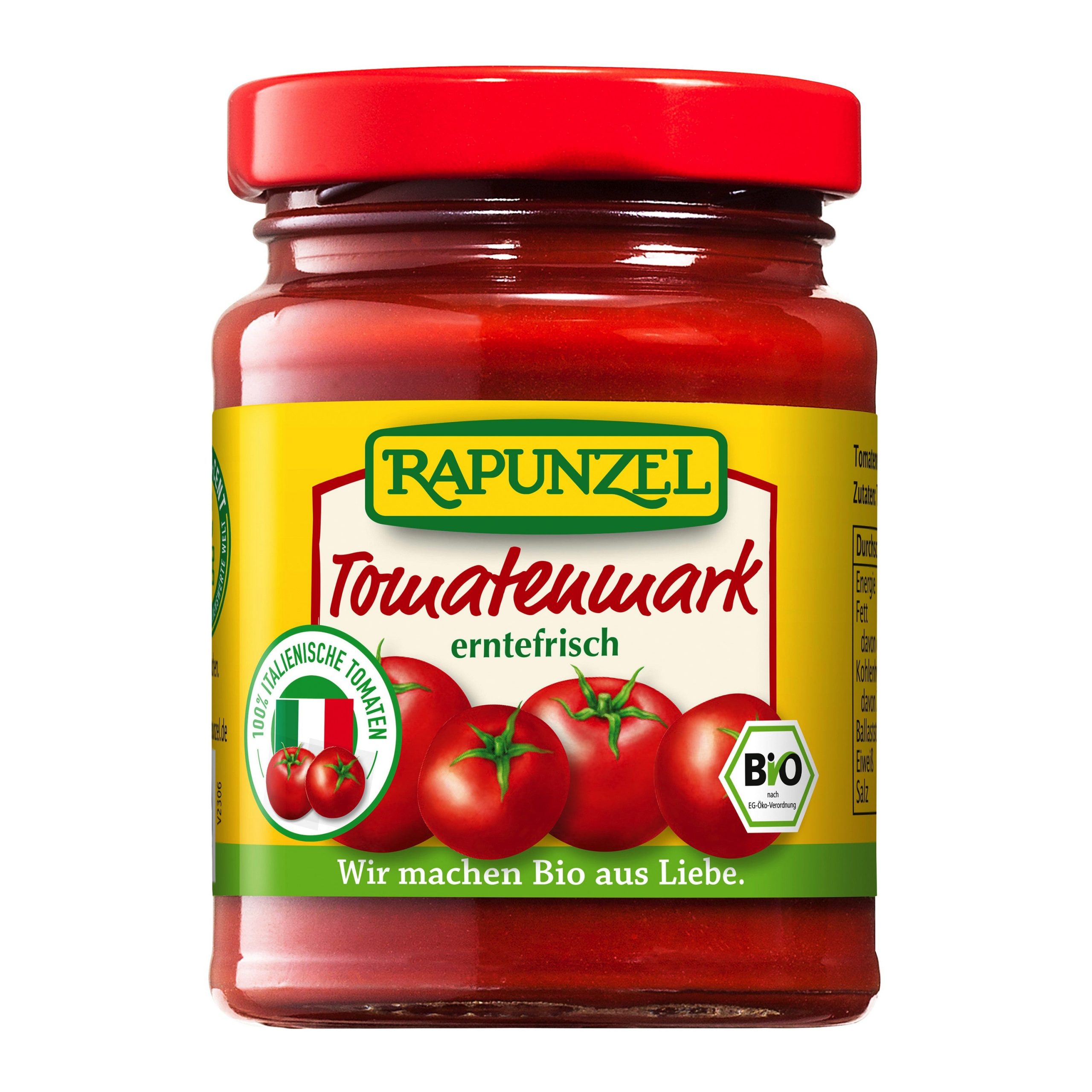 Na výrobu tohoto protlaku byla použita rajčata odrůdy Mauro Roso, vyšlechtěná tradičními postupy přímo pro použití v ekologickém zemědělství. Tato rajčata uzrála ve slunečné Umbrii a po sklizni byla rychle zpracována. Výrobce protlaku totiž používá pouze plody, které vyrostly na jeho vlastní ekofarmě. Rajčata se tak nemusí po sklizni dálkově transportovat a výrobce má dokonalou kontrolu nad tím, jaké plody při výrobě používá. Během šetrné přípravy si protlak uchovává přírodní chuť a vůni. Samozřejmě neobsahuje přidaný cukr ani zahušťovací látky a je balen ve skle. Tento rajský protlak je ideálním základem rajčatových omáček na těstoviny, klasické rajské omáčky, rajské polévky a dipů, podkladem na pizzu a součástí marinád a zeleninových směsí. Jeden z předních výrobců biopotravin v Evropě Rapunzel přišel na trh v roce 1974. Od počátku dbá na to, aby suroviny pocházely z ekologických zemědělství, která o půdu pečují tak, aby dávala plodiny i budoucím generacím. Dnes má v portfoliu téměř 600 vegetariánských produktů – od oříškových másel a müsli až po oleje či luštěniny.