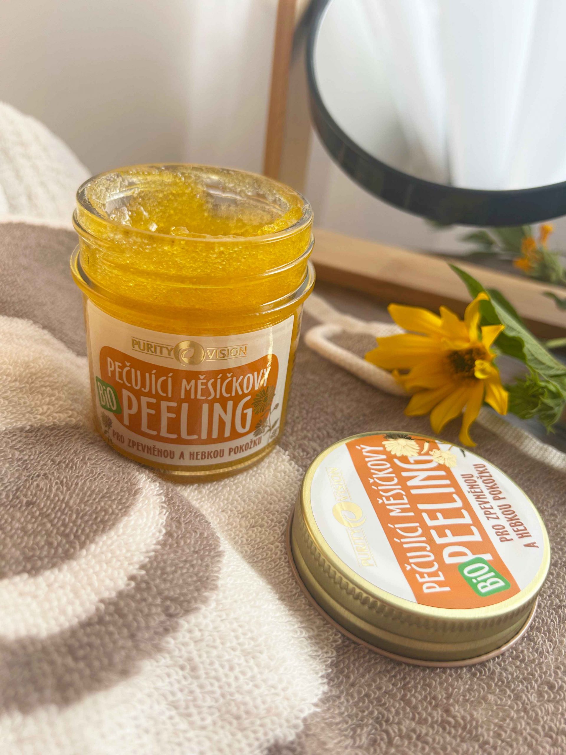 Pečující měsíčkový peeling Purity Vision v BIO kvalitě přináší příjemný zážitek pro vaši pokožku – jemné cukrové krystalky v kombinaci s macerátem měsíčku, rakytníkovým, mandlovým a jojobovým olejem pokožku šetrně vyhlazují, rozjasňují a zanechávají ji sametově hebkou. Sladká vůně pomeranče a měsíčku umocňuje smyslový požitek z každého použití. Peeling je vhodný pro všechny typy pleti, podporuje její přirozenou obnovu a potěší čistě přírodním složením s certifikáty NaTrue a PETA. Purity Vision je česká značka, která už od roku 2008 usiluje o spojení starého a tradičního, s novým a neotřelým. Za svůj cíl si bere nabídnout maximální kvalitu, kterou si zároveň může dovolit každý. Je to značka, která pomáhá. Podporuje sociální projekty v rozvojových zemích a zároveň neustále sleduje trendy v péči o lidské zdraví. Tak může nabídnout skutečnou přidanou hodnotu všem zúčastněným. Produkty tak nejsou už jen bohapustým zbožím. Jsou přínosem, hodnotou, příležitostí.