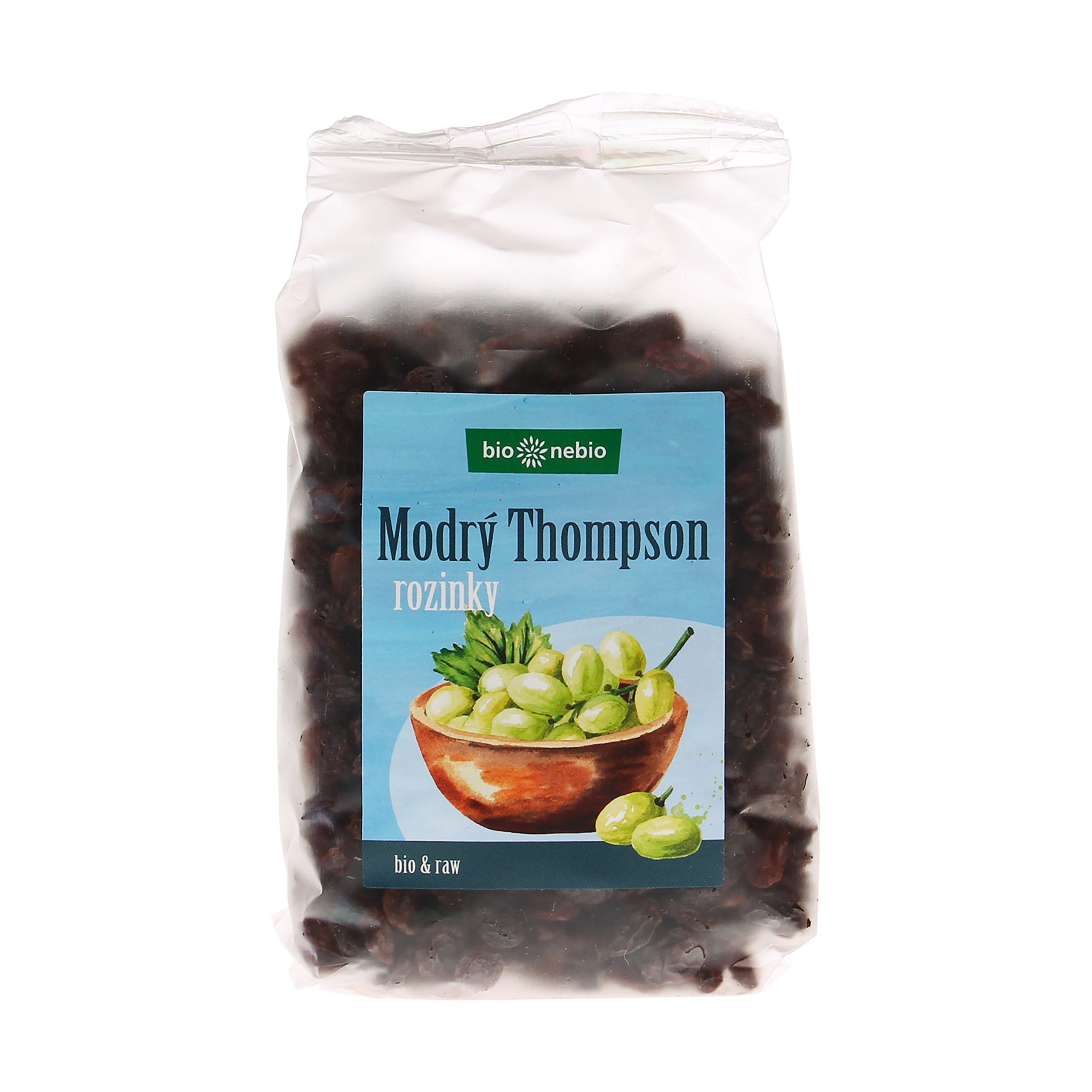 Modrý Thompson jsou velmi tmavé rozinky, které jsou výborné pro přímou konzumaci a do různých stolních směsí. Byly sušeny na slunci a jsou nesířené, což znamená, že nebyly konzervovány oxidem siřičitým či siřičitany. Mají výraznou příjemnou chuť a lze je použít i na pečení a vaření, do jogurtu, müsli a desertů. Rozinkami můžeme sladit kaše pro děti. Stačí namočit na několik hodin ve vodě, uvařit spolu s kaší a rozmixovat. Čeští Bio nebio vám kryjí záda, když chcete ukuchtit něco dobrého z kvalitních surovin, stejně jako když si chcete rovnou zamlsat bez příprav. Kvalitní potraviny nabízí už dobrých 20 let – smlsnou si na nich vegani, bezlepkáři i všichni nadšenci do zdravé chutné stravy. A navíc jsou BIO a fér.