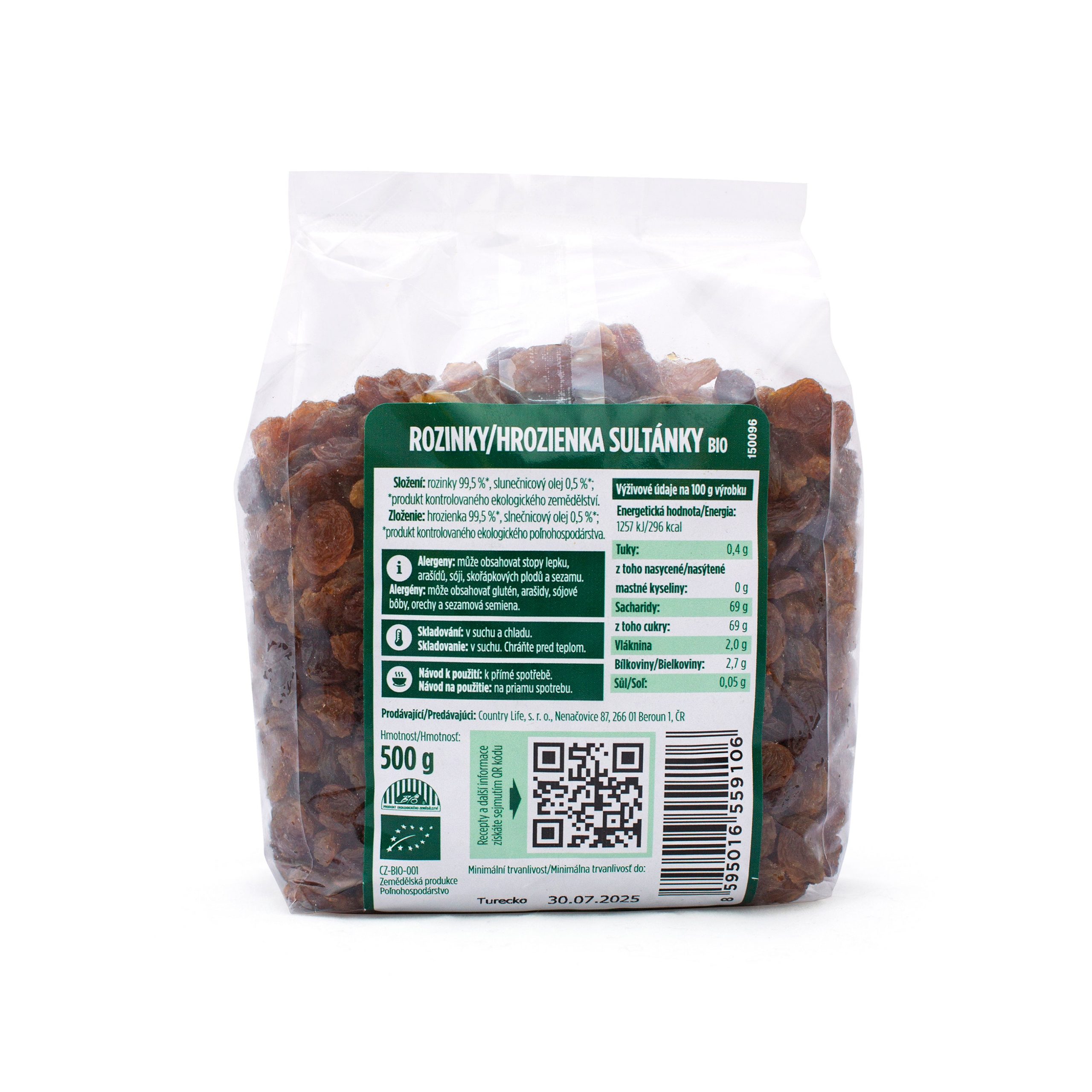 Sultánky jsou měkčí a šťavnatější než jiné druhy rozinek. Vynikají jemnou chutí s mírně oříškovými tóny a osladíte jimi třeba jáhlovou kaši, tvarohovou pomazánku nebo müsli. Rodinná firma Country Life je průkopníkem v oblasti kvalitních biopotravin. Vznikla v roce 1991 pod křídly zakladatele Otakara Jiránka a tehdejšímu Československu nabídla vůbec první bioobchod. Své portfolio postupně vybavila veganskými, raw a bezlepkovými dobrotami, ale také přírodní kosmetikou.