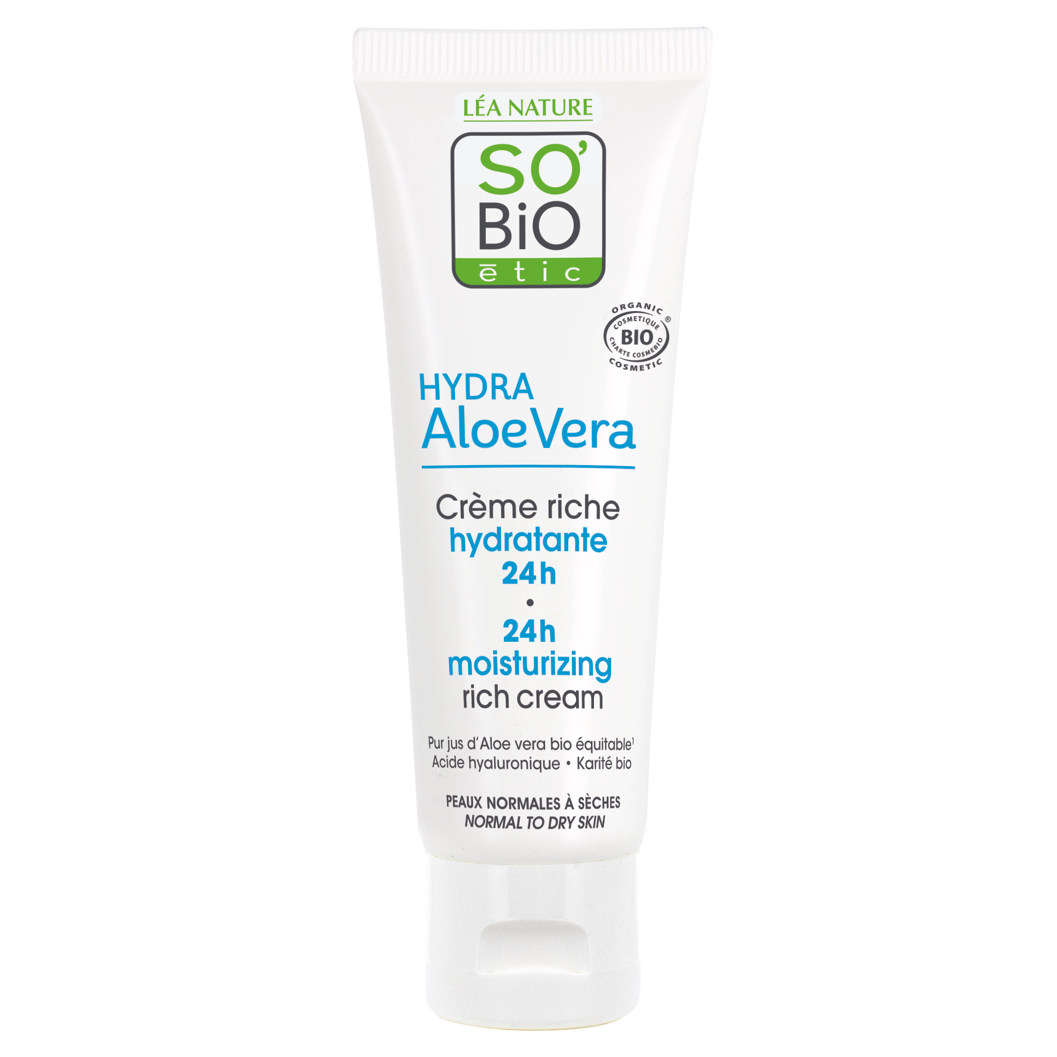 SO’BiO étic Krém bohatě hydratující denní s Aloe Vera BIO je ideální péčí o normální až suchou pleť, kterou příjemně zvláčňuje a chrání po celý den. Díky 99 % přírodních složek včetně čisté šťávy aloe vera a kyseliny hyaluronové intenzivně hydratuje, zklidňuje podráždění a podporuje regeneraci. Má jemnou rostlinnou vůni s nádechem bílých květů, navíc je zcela bez silikonů a nese certifikaci Ecocert Cosmos Organic. Etický přístup má francouzská značka SO’BiO étic nejen v názvu. Do puntíku se jím řídí už od roku 2007 při výběru dodavatelů surovin, materiálu obalů i samotné výrobě. Záleží jí na tom, aby si vysoce kvalitní přírodní kosmetiku mohl dovolit opravdu každý, a tak ji nabízí za férovou cenu. Svou širokou nabídkou opečuje ženy, muže i děti od hlavy až po paty. Portfolio neustále rozšiřuje a stíhá při tom finančně podporovat environmentální projekty. Její produkty nesou přísnou certifikaci Ecocert a ochrannou známku Cosmébio.