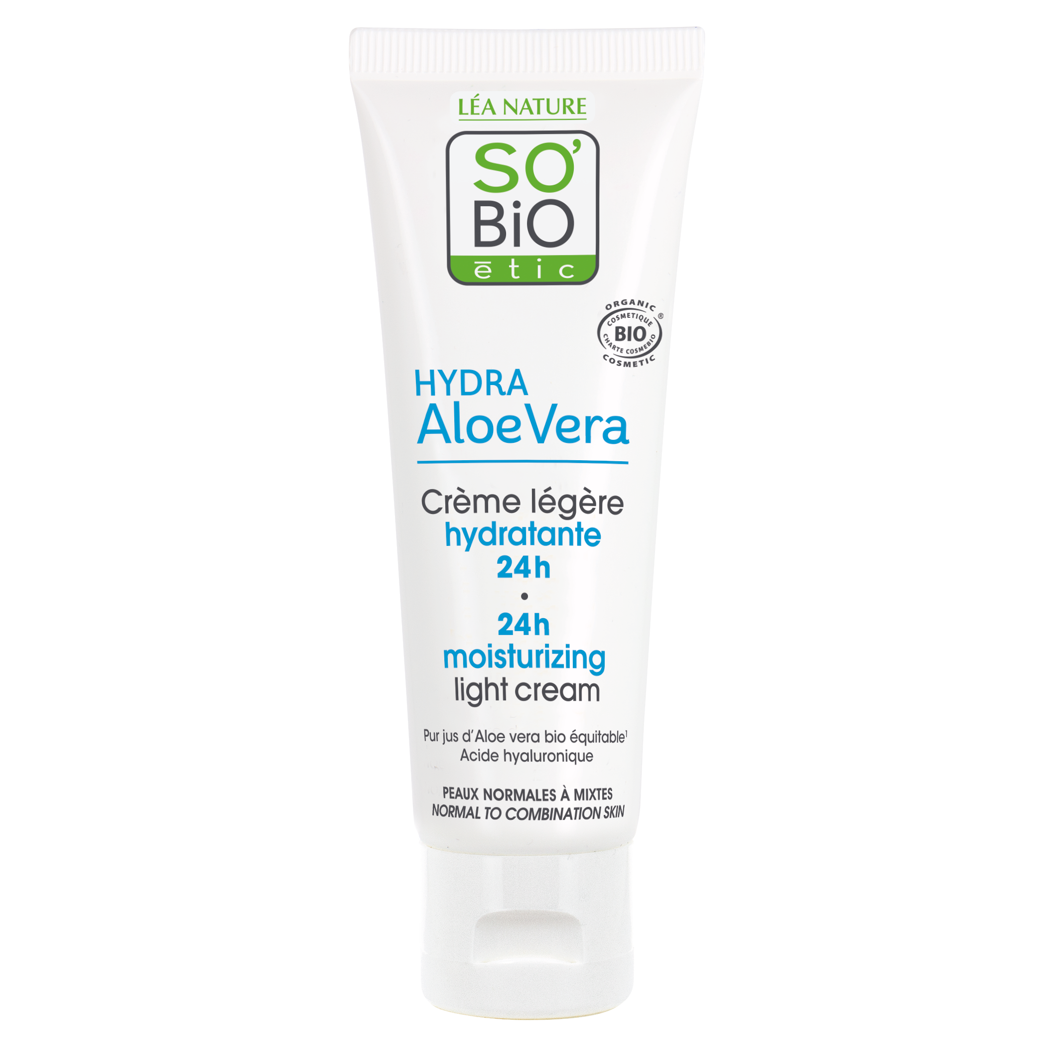 SO’BiO étic lehce hydratující denní krém s Aloe Vera BIO přináší příjemnou péči pro normální a smíšenou pleť. Díky přírodnímu složení s obsahem čisté šťávy z aloe vera a obohacením o kyselinu hyaluronovou zajistí pleti potřebnou dávku hydratace, zklidnění a jemnou regeneraci. Konzistence je lehká a svěží, rychle se vstřebává a nezanechává mastný pocit. Krém neobsahuje silikony, má jemnou přirozenou vůni aloe vera a pyšní se certifikací Ecocert Cosmos Organic. Nanáší se ráno na vyčištěnou pleť. Etický přístup má francouzská značka SO’BiO étic nejen v názvu. Do puntíku se jím řídí už od roku 2007 při výběru dodavatelů surovin, materiálu obalů i samotné výrobě. Záleží jí na tom, aby si vysoce kvalitní přírodní kosmetiku mohl dovolit opravdu každý, a tak ji nabízí za férovou cenu. Svou širokou nabídkou opečuje ženy, muže i děti od hlavy až po paty. Portfolio neustále rozšiřuje a stíhá při tom finančně podporovat environmentální projekty. Její produkty nesou přísnou certifikaci Ecocert a ochrannou známku Cosmébio.