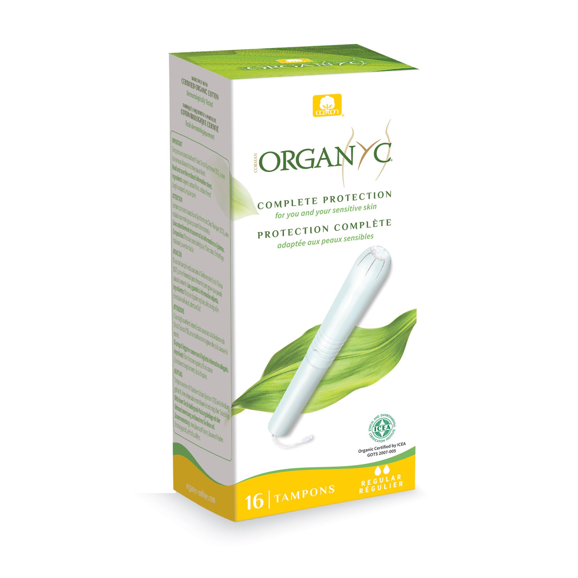 Absorpční jádro je vyrobeno pouze z organických bavlněných vláken. Tampony jsou hypoalergenní. Aplikátor z recyklovaného kartonu umožňuje snadné a bezpečné zasunutí. Italská značka Organyc vyrábí první ženskou i dětskou intimní hygienickou řadu výhradně z certifikované, šetrně vypěstované 100% BIO bavlny, která je dokonalým materiálem pro vaši pokožku i intimní partie.