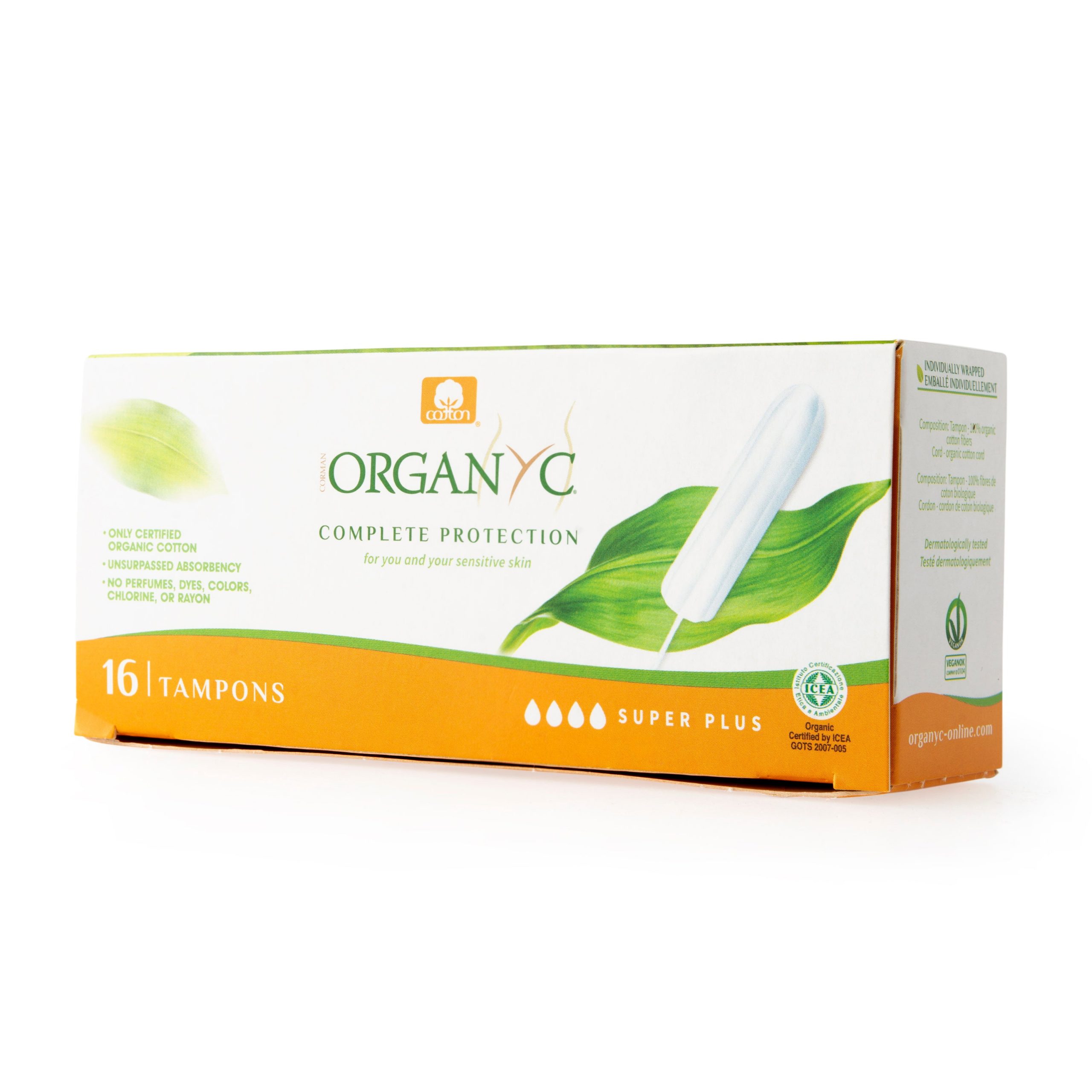 Tampony v biokvalitě. Absorpční jádro je vyrobeno pouze z organických bavlněných vláken. Tampony jsou hypoalergenní a se zvýšenými absorpčními vlastnostmi. Italská značka Organyc vyrábí první ženskou i dětskou intimní hygienickou řadu výhradně z certifikované, šetrně vypěstované 100% BIO bavlny, která je dokonalým materiálem pro vaši pokožku i intimní partie.